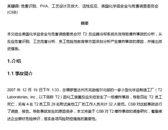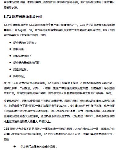 CSB典型事故案例分析—T2反應器冷卻失效爆炸事故給我們的啟示